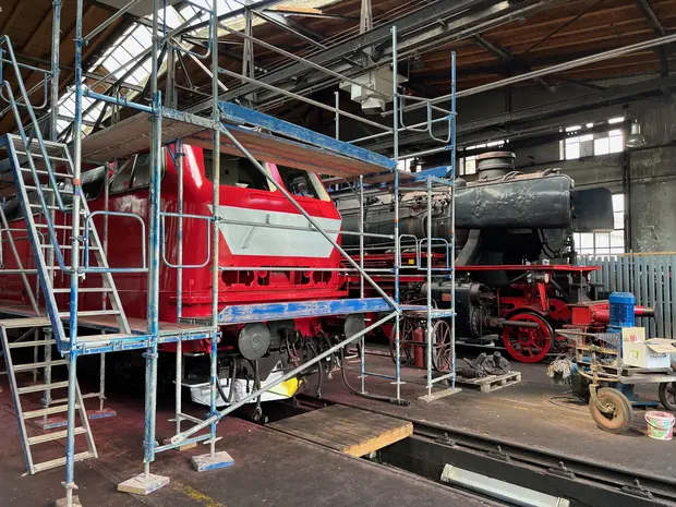 Auf Wunsch unterstützen wir Arbeiten an Fahrzeugen durch technische Dienstleistungen, etwa Rangierleistungen mit unseren eigenen Diesellokomotiven, das Abschleppen von Schadfahrzeugen oder das Drehen von Lokomotiven, Güterwagen und Gleisbaumaschinen über die historische Drehscheibe.
